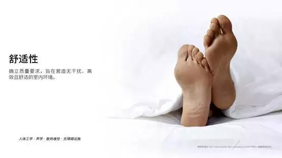 從舒適策略落實最新關于人體工程學及通用設計的研究以利于骨絡系統(tǒng);通過舒適、空氣、水策略減緩壓力和環(huán)境中的毒素,維護泌尿系統(tǒng)安全。