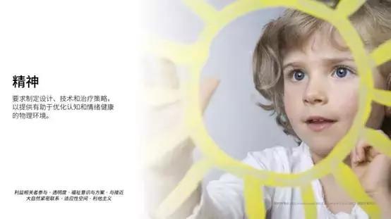 從光、空氣、水、舒適策略通過各方面介入,將支持神經(jīng)和感知功能至于最重要的位置;從營養(yǎng)和健身提出策略維護生殖系統(tǒng)健康;從空氣、健身策略限制環(huán)境中的霉菌和病菌,提供更多的健身機會,維護正常的呼吸系統(tǒng)功能。