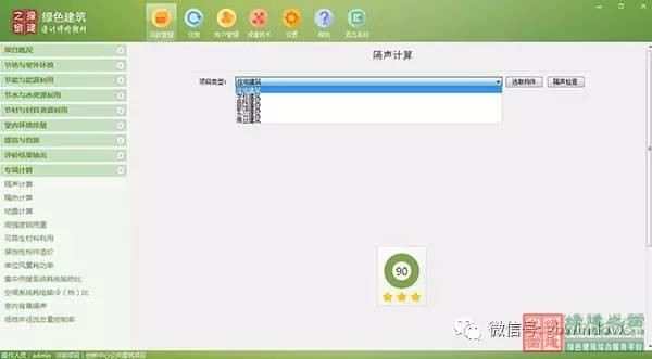 2017年6月底,自評軟件再次升級后,綠建審圖及評審所必須的綠建專項計算項目更大幅增加到11大項,分別是:隔聲計算、隔熱計算、結(jié)露計算、高強度鋼用量、可再生材料利用、裝飾性構(gòu)件造價、單位風量耗功率、集中供暖系統(tǒng)耗電輸熱比、空調(diào)系統(tǒng)耗電輸冷(熱)比、室內(nèi)背景噪聲、場地年徑流總量控制率。加上之前的基本功能,已經(jīng)完全滿足綠建審圖所提及的懇要點,極大幫助設(shè)計院的降低了綠建審圖及綠建評星的相關(guān)工作,同時最為重要的是“綠色建筑設(shè)計評價軟件”已經(jīng)不僅僅是當初“一鍵生成自評估報告”的誕生雛形,它已經(jīng)發(fā)展成為指導(dǎo)設(shè)計院學會、應(yīng)用、操作綠建咨詢的絕佳工具和應(yīng)用型綠建平臺。