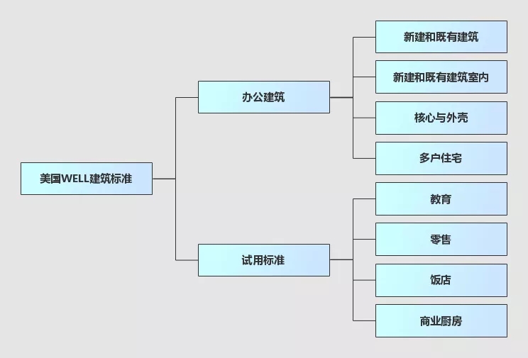 美國WELL建筑標(biāo)準(zhǔn)適用范圍包括:新建和既有建筑、新建和既有建筑室內(nèi)、核心與外殼。此外WELL還推出試用標(biāo)準(zhǔn),其適用建筑范圍包括:多戶住宅、教育、零售、飯店、商業(yè)廚房。