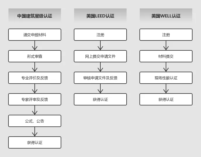 在證書有效期方面,中國綠色建筑評價標(biāo)準(zhǔn)星級認證分為“設(shè)計標(biāo)識”和“運行標(biāo)識”,“設(shè)計標(biāo)識”有效期2年,“運行標(biāo)識”有效期3年,美國WELL認證有效期也為3年;認證證書到期后需要重新申請認證。美國LEED認證為終身有效(LEED EB除外)。