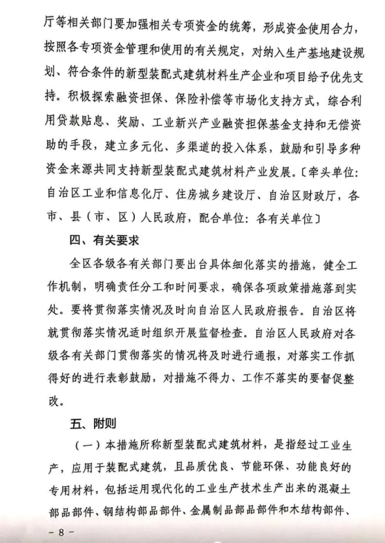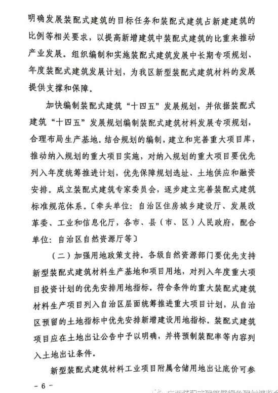 廣西壯族自治區(qū)工業(yè)和信息化廳與廣西壯族自治區(qū)住房和城鄉(xiāng)建設(shè)廳聯(lián)合印發(fā)《關(guān)于支持廣西新型裝配式建筑材料產(chǎn)業(yè)發(fā)展若干措施的通知》,通知明確了若干推動裝配式建筑發(fā)展的強有力措施,高位推動,勢不可擋!