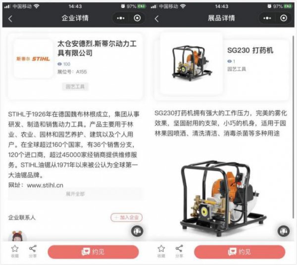 點(diǎn)擊“約見”即享好禮1-對(duì)心儀的展商展品,一鍵發(fā)起約見
