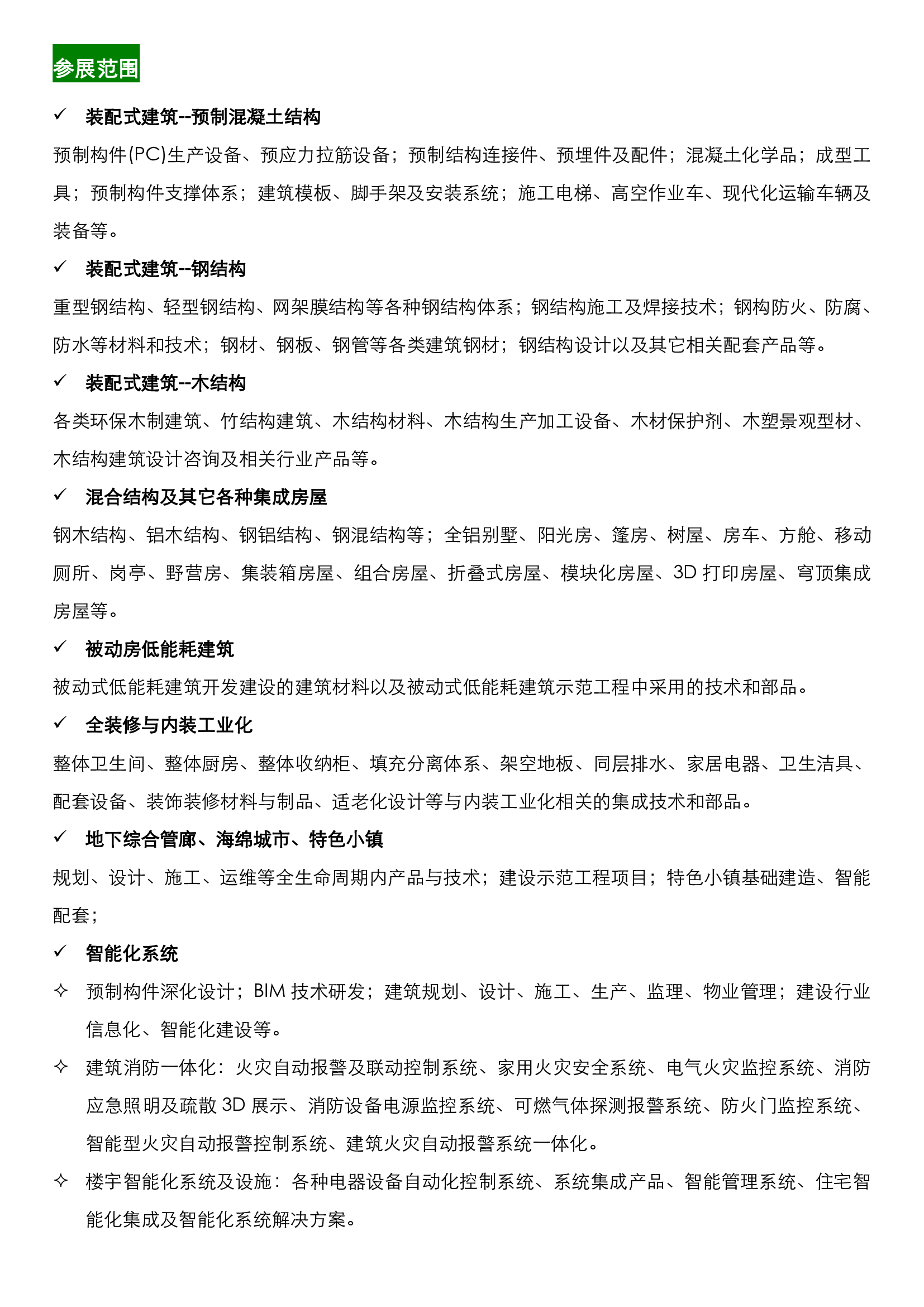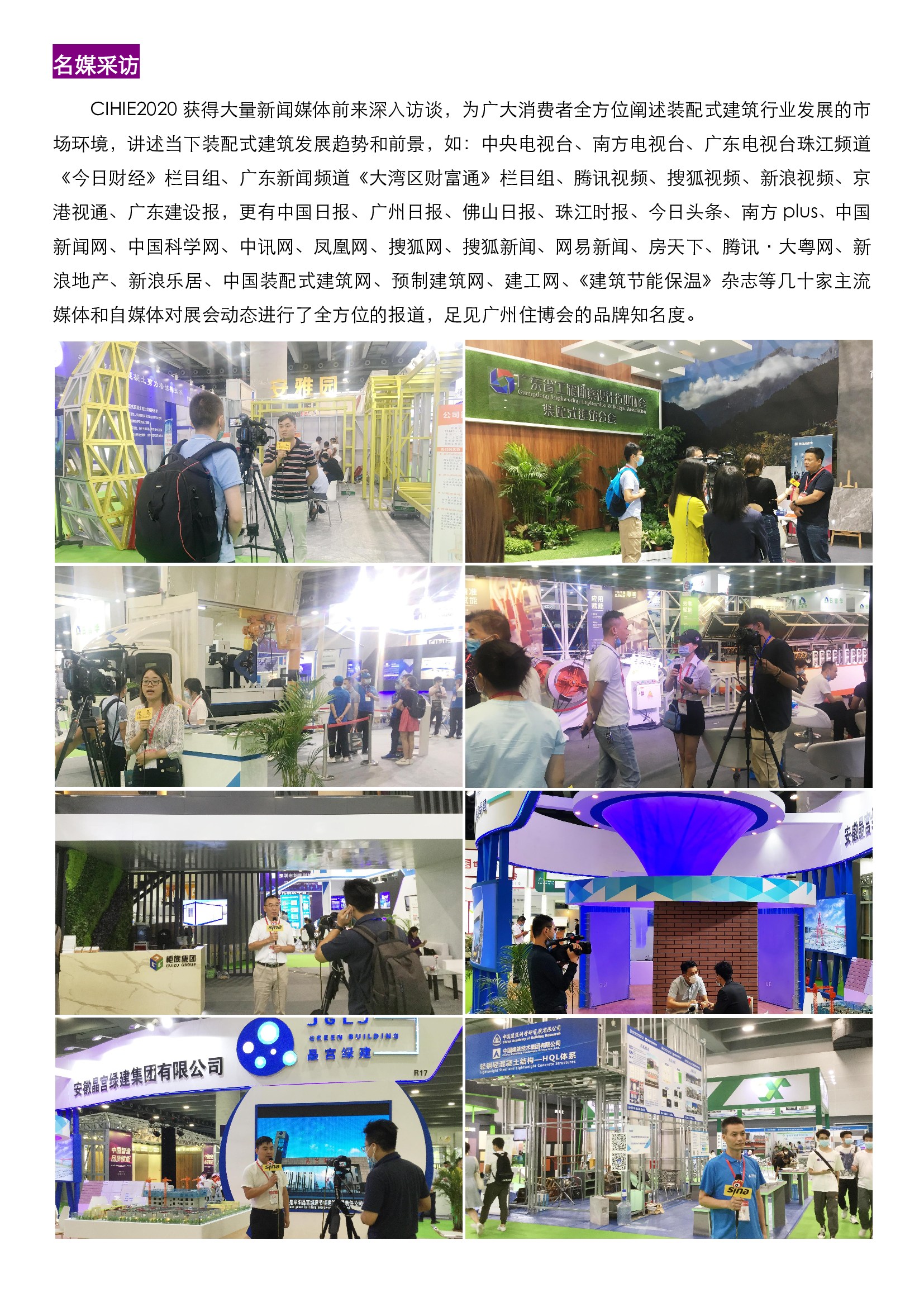 ——搭建線上平臺,提升推廣效率,新媒體矩陣傳播成行業(yè)推廣新業(yè)態(tài)!搭載時(shí)下熱門綜合營銷推廣及傳播策略、高效提升推廣效率的渠道,讓企業(yè)產(chǎn)品在短時(shí)間內(nèi)“打響、打亮、打遠(yuǎn)”,幫助企業(yè)實(shí)現(xiàn)自身品牌推廣和產(chǎn)品展示,蹭足展會(huì)熱度,不斷刷新曝光率,住博會(huì)一直在努力,以進(jìn)擊步伐潛望裝配業(yè)態(tài)。本屆展會(huì)通過逐步完善自身服務(wù)產(chǎn)出及技術(shù)升級,多方對接廣闊市場的平臺及端口,進(jìn)一步提升戰(zhàn)略合作伙伴供應(yīng)鏈整合,在辦展及推廣形式上,采用了“線下展會(huì)/講座/大賽+線上直播”的多渠道、立體化、配置 KOL(行業(yè)意見領(lǐng)袖)帶貨式的產(chǎn)品及品牌傳播矩陣搭建,通過傳統(tǒng)網(wǎng)頁、移動(dòng)網(wǎng)頁、微信客戶端、公眾號、小程序及直播平臺等,實(shí)現(xiàn)了為本次展會(huì)提供全閉環(huán)的流量域池,滿足了從線上看展、參會(huì)、活動(dòng)互動(dòng)、講座直播、大賽觀摩、評論分享等多位一體的線上平臺支撐。在展會(huì)官方電腦網(wǎng)頁及移動(dòng)直播平臺上,有逾六千名線上觀眾關(guān)注并參與評論互動(dòng)。展會(huì)中提供優(yōu)質(zhì)、可實(shí)現(xiàn)共享的綜合媒體資源,讓企業(yè)在參展中搭乘了新時(shí)期融媒體新模式的快車,以快速化、高效化、精準(zhǔn)化、俱進(jìn)式的推廣,充分建立品牌信任背書,加速實(shí)現(xiàn)品牌理念和核心產(chǎn)品的廣泛傳播,在業(yè)界逐漸增大品牌影響力。品牌聚集本屆住博會(huì)憑借自身品牌號召力,吸納了眾多建筑業(yè)翹楚爭奇斗艷,充分融合多家供應(yīng)鏈上優(yōu)秀企業(yè)資源,覆蓋裝配式建筑相關(guān)開發(fā)建設(shè)、設(shè)計(jì)、施工、構(gòu)件生產(chǎn)、產(chǎn)品配套等產(chǎn)業(yè)鏈上下游各領(lǐng)域。如:艾爾柯瑞特、中建科工、廣州工程總承包集團(tuán)、中國建筑技術(shù)集團(tuán)/中國建筑科學(xué)研究院、凡林裝配式/吉林建筑大學(xué)設(shè)計(jì)研究院、晶宮綠建、廣州房建、景龍建設(shè)、廣州建筑裝飾集團(tuán)、寶力控股集團(tuán)、廣東寰宇、越達(dá)建筑、山東方圓、現(xiàn)代營造、億洲機(jī)械、白云化工、集泰化工、普賽達(dá)、紫荊花漆、日吉華、菲力綠色、松本綠色、玉輝新材料、園方木業(yè)、寶源木業(yè)、旭華圣洛迪、斯派爾、豐源鋼構(gòu)、中構(gòu)新材、瑋萊房屋、魔倉住宅、中配集成房屋、中正建筑、愛上柜族、中創(chuàng)智造、玉發(fā)達(dá)、匯達(dá)集成房屋、酷家樂、新潤成陶瓷、雅穗集成家居、赫來斯、迪歐家具、IPAUL 艾寶龍、simon 西蒙電氣、Midea 美的、海爾智家、大禾眾邦、北塔螺絲、艾珀耐特等國內(nèi)外裝配式建筑領(lǐng)域前沿企業(yè)悉數(shù)亮相。