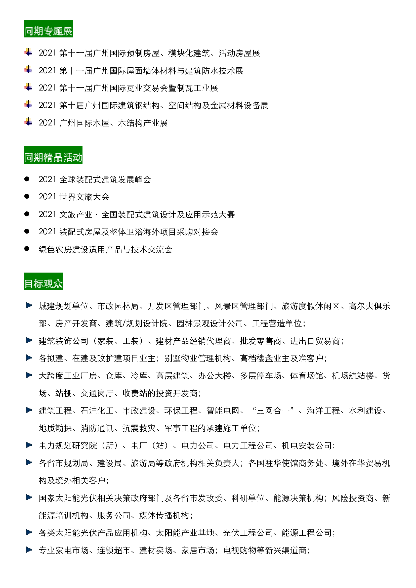 時(shí)間:2020-12-25 23:42:41 作者:GBWindows 來源:原創(chuàng)文章 閱讀:1749內(nèi)容摘要:廣州住博會(huì)|2021第十三屆中國(廣州)國際集成住宅產(chǎn)業(yè)博覽會(huì)暨建筑工業(yè)化產(chǎn)品與設(shè)備展邀請函2021第十三屆中國(廣州)國際集成住宅產(chǎn)業(yè)博覽會(huì)暨建筑工業(yè)化產(chǎn)品與設(shè)備展The 13th China Int'l Integrated Housing Industry & Building Industrialization Expo時(shí)間:2021年5月10日-12日 地點(diǎn):中國進(jìn)出口商品交易會(huì)展館B區(qū)裝配式建筑領(lǐng)域的“廣交會(huì)”展品內(nèi)容:工程總承包項(xiàng)目、混凝土預(yù)制件、鋼結(jié)構(gòu)模塊化房屋、輕鋼別墅、鋁制別墅、集裝箱房、木屋、木塑集成房屋、陽光房、帳篷酒店、遮陽棚、景觀膜結(jié)構(gòu)、園林庭院、移動(dòng)廁所、別墅配套、全裝修與內(nèi)裝工業(yè)化、屋面瓦、墻體材料、防水材料、密封膠、墻板設(shè)備、彩鋼設(shè)備、制瓦設(shè)備、設(shè)計(jì)軟件……主辦單位:中國勘察設(shè)計(jì)協(xié)會(huì)建筑產(chǎn)業(yè)化分會(huì)中國貿(mào)促會(huì)建設(shè)行業(yè)分會(huì)集成建筑委員會(huì)綠色裝配式農(nóng)房產(chǎn)業(yè)技術(shù)創(chuàng)新戰(zhàn)略聯(lián)盟廣東省鋼結(jié)構(gòu)協(xié)會(huì)廣東省建設(shè)工程綠色與裝配式發(fā)展協(xié)會(huì)廣東省裝配式部品部件分會(huì)廣東省工程勘察設(shè)計(jì)行業(yè)協(xié)會(huì)裝配式建筑分會(huì)廣東鴻威國際會(huì)展集團(tuán)有限公司協(xié)辦單位:中國旅游景區(qū)協(xié)會(huì)中國林業(yè)產(chǎn)業(yè)聯(lián)合會(huì)生態(tài)旅居與露營分會(huì)中國木材保護(hù)工業(yè)協(xié)會(huì)中國菱鎂行業(yè)協(xié)會(huì)中國建筑材料流通協(xié)會(huì)屋面瓦委員會(huì)中國金盤房地產(chǎn)開發(fā)產(chǎn)業(yè)聯(lián)盟中國商業(yè)經(jīng)濟(jì)學(xué)會(huì)快裝產(chǎn)業(yè)分會(huì)中國裝配式建筑網(wǎng)廣東省墻體材料行業(yè)協(xié)會(huì)廣東省建材綠色產(chǎn)業(yè)技術(shù)創(chuàng)新促進(jìn)會(huì)支持單位:中國建筑標(biāo)準(zhǔn)設(shè)計(jì)研究院廣州市建筑業(yè)聯(lián)合會(huì)深圳市建筑產(chǎn)業(yè)化協(xié)會(huì)深圳市綠色建筑協(xié)會(huì)佛山市裝配式建筑協(xié)會(huì)佛山市順德區(qū)工程勘察設(shè)計(jì)咨詢協(xié)會(huì)佛山市順德區(qū)樂從鋼鐵貿(mào)易協(xié)會(huì)天津市金屬材料行業(yè)協(xié)會(huì)海外組織:American Concrete InstituteArgentina Green Building CouncilBIM AcademyBIM CommunityBuildingSMARTMalaysiaContainer Traders and Innovators AssociationContinental Automated Buildings AssociationEstonian Woodhouse AssociationGreen PrefabHong Kong Green Building CouncilMaster Builders Association MalaysiaNational Association of Steel-Framed Housing Inc.National Precast Concrete Association AustraliaNDIBMVprefabAUSVietnam Green Building CouncilVietnam’s Association of Construction ContractorsWorld Architecture Community媒體宣傳:CCTV9、廣東電視臺新聞?lì)l道、南方電視臺經(jīng)濟(jì)頻道、廣東建設(shè)報(bào)、中國日報(bào)、消費(fèi)日報(bào)、人民日報(bào)、中國經(jīng)濟(jì)導(dǎo)報(bào)、中國財(cái)經(jīng)時(shí)報(bào)、中國商報(bào)、中國周刊、中國網(wǎng)、中國新聞網(wǎng)、中國經(jīng)濟(jì)新聞網(wǎng)、中國科學(xué)網(wǎng)、中國發(fā)展網(wǎng)、環(huán)球網(wǎng)、新華網(wǎng)、鳳凰網(wǎng)、中華網(wǎng)、央廣網(wǎng)、光明網(wǎng)、南方網(wǎng)、大眾新聞網(wǎng)、國際在線、新華在線、今日頭條、騰訊天天快報(bào)、網(wǎng)易房產(chǎn)、搜狐焦點(diǎn)、新浪地產(chǎn)、房天下、獵房網(wǎng)、建設(shè)網(wǎng)、建工網(wǎng)、預(yù)制建筑網(wǎng)、住宅公園、中國建筑材料品牌網(wǎng)、集成匯、歲友空間、新農(nóng)村別墅網(wǎng)、北洋鋼鐵網(wǎng)、58同城、《聚風(fēng)塑料》雜志、建筑英才網(wǎng)、設(shè)計(jì)群網(wǎng)、順德裝飾網(wǎng)、中展通、快裝天下《快行者》雜志、第一展會(huì)網(wǎng)、《建筑節(jié)能保溫》雜志、《外墻保溫》月刊、樂從鋼鐵世界網(wǎng)、八客網(wǎng)、易企興、不銹鋼天地、環(huán)球木業(yè)門戶網(wǎng)、《鋒鏑傳媒》雜志、《砂漿和保溫》雜志、中國涂料在線、筑牛網(wǎng)、《防水與施工》雜志 、《智能建筑與智慧城市》雜志、《防水E視界》雜志、《門窗幕墻月刊》雜志、《中國防水與保溫》雜志、《防水商情》《保溫精選》雜志、《工程建設(shè)實(shí)用手冊》雜志、《鋼結(jié)構(gòu)與設(shè)備》雜志、輕鋼別墅網(wǎng)、品牌板材網(wǎng)、土流網(wǎng)、《廣東建材》雜志、ARCHINA建筑中國、國際節(jié)能環(huán)保網(wǎng)、地源熱泵網(wǎng)、中國涂料英才網(wǎng)、好居網(wǎng)、《涂料商情》雜志、中國木屋網(wǎng)·木別墅、掌上世博、云同盟、E展網(wǎng)、京港視通、鋼管天下、中國木業(yè)資源網(wǎng)、中華整木網(wǎng)、中國木材網(wǎng)、中國城市發(fā)展網(wǎng)、中國防水企業(yè)網(wǎng)、中國供熱網(wǎng)、招商寶、中國建材招商網(wǎng)、中國招標(biāo)網(wǎng)、U展訊、CO土木在線園林、十環(huán)網(wǎng)、搜活動(dòng)房網(wǎng)、CCD中國建筑裝飾網(wǎng)、會(huì)商寶、建材之家、建設(s