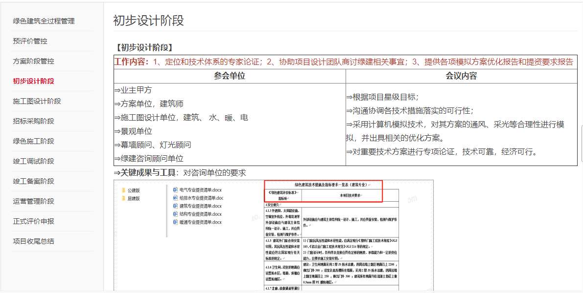 1、綠建分階段工作內(nèi)容、關(guān)鍵成果及控制要點(diǎn);