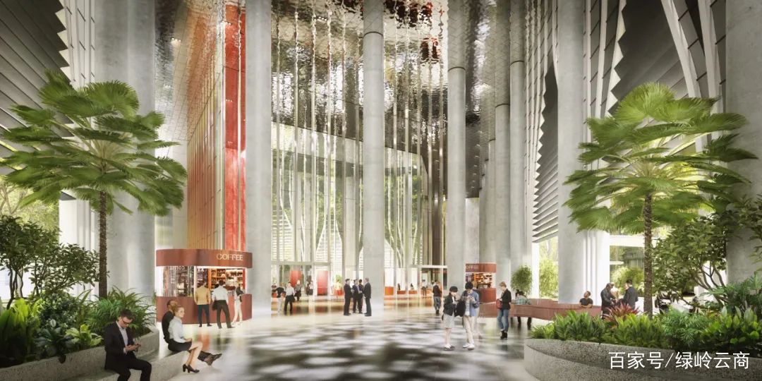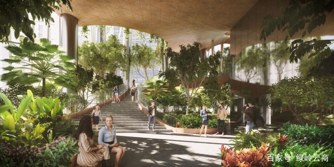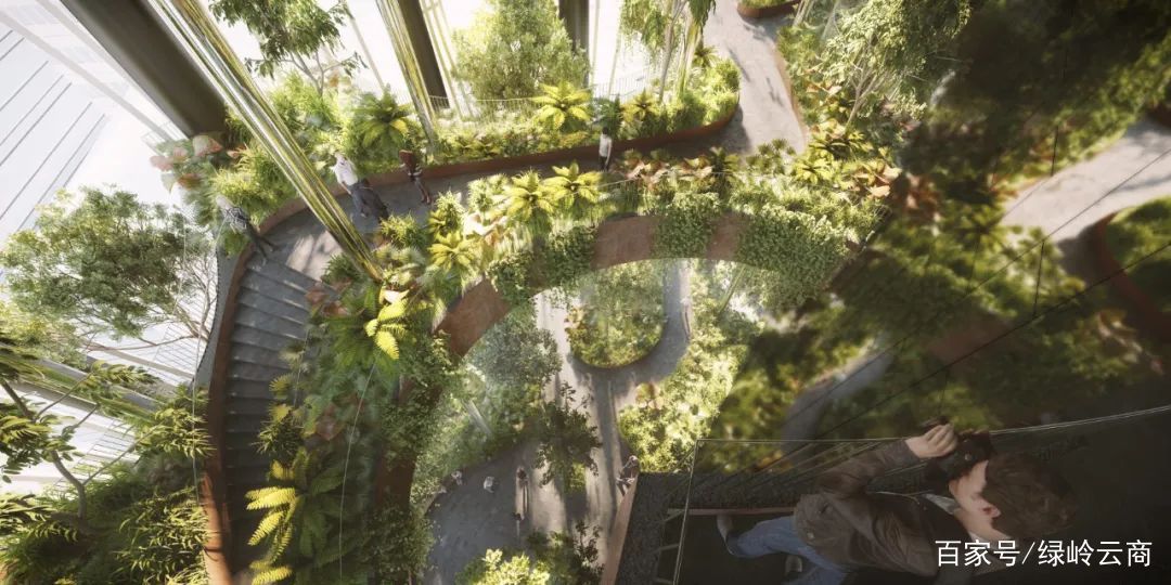 設(shè)計(jì)師在高級(jí)甲級(jí)辦公樓和現(xiàn)代服務(wù)式住宅之間打造了一片超過(guò)35米高的綠洲。