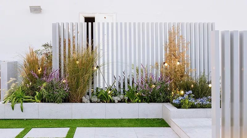 根據(jù)建筑周邊圈梁位置荷載較大的特點(diǎn),在屋頂周邊靠墻一側(cè)固定種植池,利用植物直立、懸垂或匍匐的特性,種植低矮灌木或攀援植物。