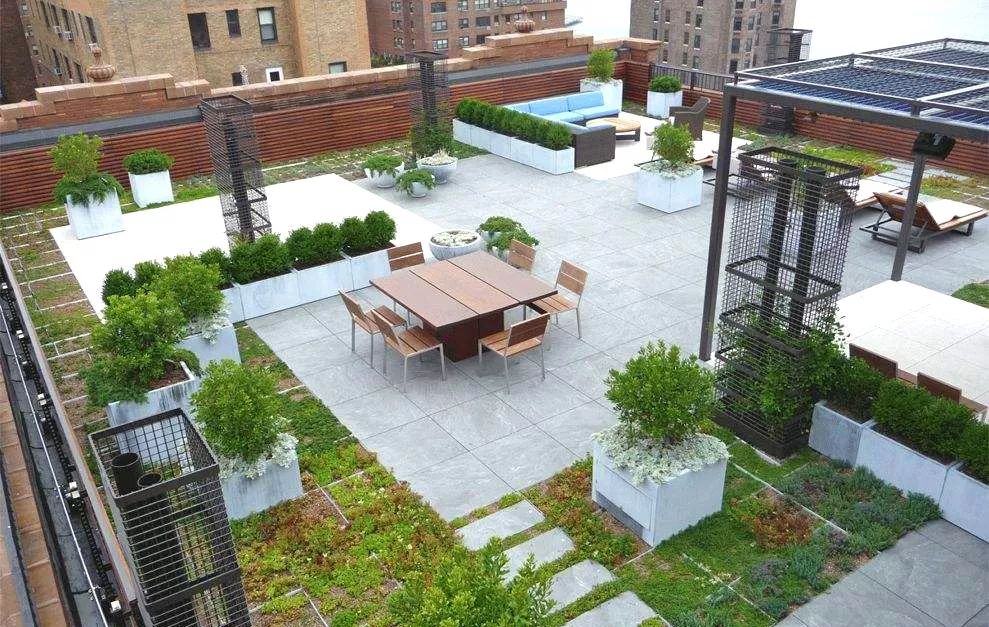 密集型綠色屋頂荷載承受能力較高,能夠種植覆土較高的喬木、灌木,打造景觀體驗(yàn)豐富的屋頂花園。