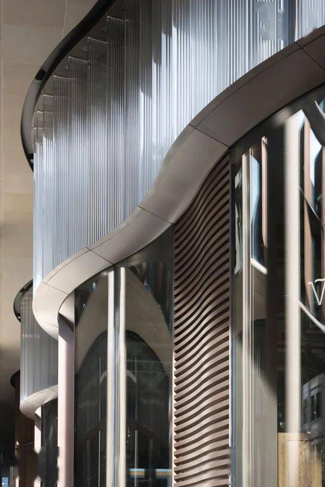該建筑的立面以一系列巨大的古銅色“扇片”為特點,扇片的開合可以調節(jié)室內溫度、濕度以及實現過濾空氣的功能,同時還可以削弱噪音,降低聲污染。 通過對自然風的控制來有效的省去了室內通風裝置設施,從而實現了從源頭上的節(jié)能控流。