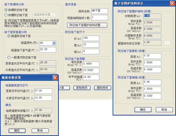 地下室計算模型,主要參考《人民防空地下室設(shè)計規(guī)范》和《防空地下室設(shè)計手冊》中的相關(guān)計算理論和算法。支持深埋和淺埋地下室,也支持恒溫防空地下室和一般通風(fēng)防空地下室的計算。
