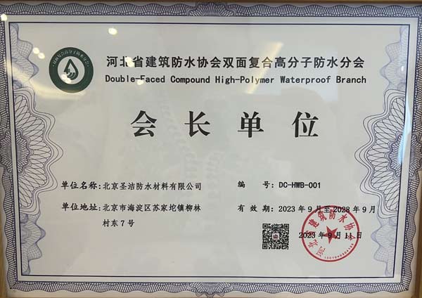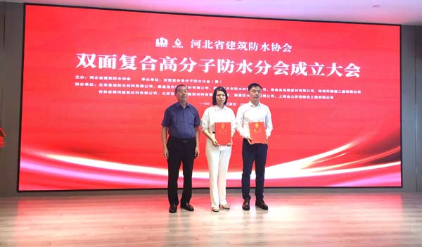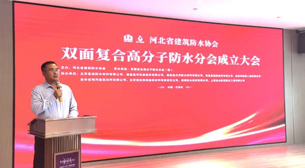 2023年9月11日,由河北省建筑防水協(xié)會(huì)主辦、雙面復(fù)合高分子防水分會(huì)(籌)承辦、北京圣潔防水材料有限公司、哈高科綏棱二塑有限公司、秦皇島市松巖建材有限公司、秦皇島天衣防水材料有限公司、秦皇島地維建材有限公司、北京世紀(jì)保佳建筑材料有限責(zé)任公司、吉林省翔河建筑材料有限公司、海盾防水建材有限公司、上海金山僑茂綜合工程有限公司協(xié)辦的“河北省建筑防水協(xié)會(huì)雙面復(fù)合高分子防水分會(huì)成立大會(huì)、雙面復(fù)合高分子防水系統(tǒng)創(chuàng)新發(fā)展論壇”在石家莊舉行。