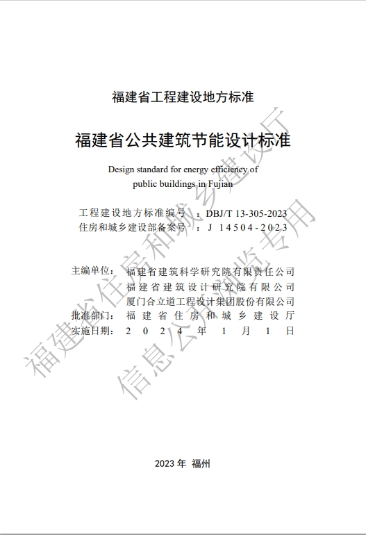 由福建省建筑科學研究院有限責任公司、福建省建筑設(shè)計研究院有限公司、廈門合立道工程設(shè)計集團股份有限公司編制的《福建省公共建筑節(jié)能設(shè)計標準》,經(jīng)組織審查,批準為福建省工程建設(shè)地方標準,編號DBJ/T 13-305-2023,自2024年1月1日起實施,原《福建省公共建筑節(jié)能設(shè)計標準》DBJ 13-305-2019同時廢止。在執(zhí)行過程中,有何問題和意見請函告省廳科技與設(shè)計處。