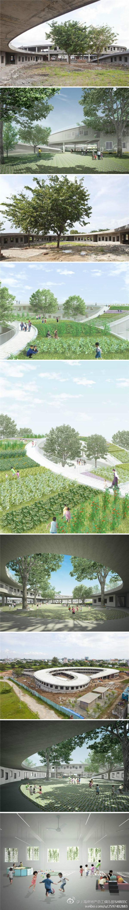 @上海房地產(chǎn)總工俱樂(lè)部SHREEC:農(nóng)場(chǎng)幼兒園。這所幼兒園可以為500名學(xué)齡前兒童提供具有熱帶地區(qū)特色的教育方式。這一農(nóng)場(chǎng)幼兒園目前還在建設(shè)當(dāng)中,有望在今年9月底完工。農(nóng)場(chǎng)幼兒園旨在創(chuàng)建可持續(xù)性學(xué)>設(shè)計(jì)方案,為孩子提供學(xué)習(xí)種植所需食物的機(jī)會(huì)。幼兒園屋頂具有連貫的表面,回環(huán)的結(jié)構(gòu)勾勒出三個(gè)操場(chǎng)的輪廓。