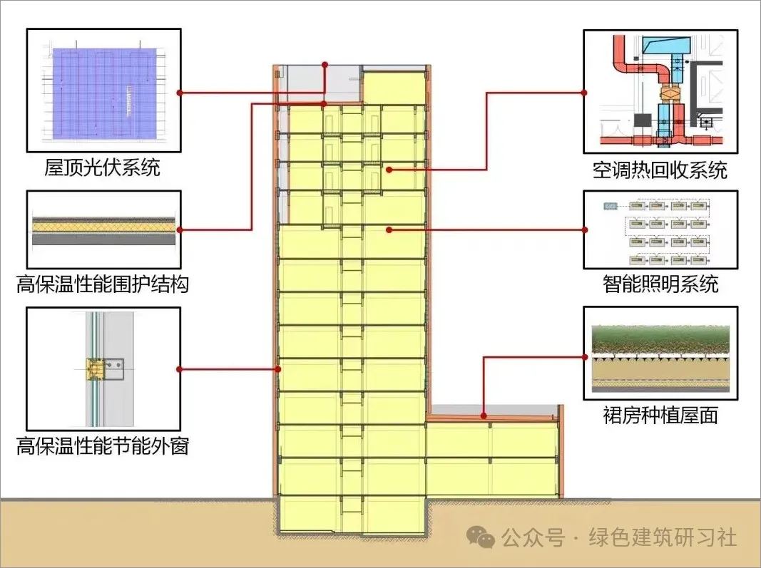 維修樓作為車輛基地內(nèi)的標(biāo)志性高層民用建筑,集綜合辦公維修、司乘休憩空間及后勤安保功能于一體,總建筑面積約1.65萬(wàn)平方米,地上十二層,地下一層。該樓充分利用可再生能源,獲得“綠建三星”和“近零能耗建筑”雙認(rèn)證。