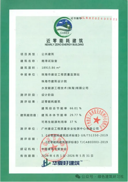 近期,南灣試驗(yàn)室項(xiàng)目榮獲中國(guó)建筑節(jié)能協(xié)會(huì)認(rèn)證“近零能耗建筑”標(biāo)識(shí)。