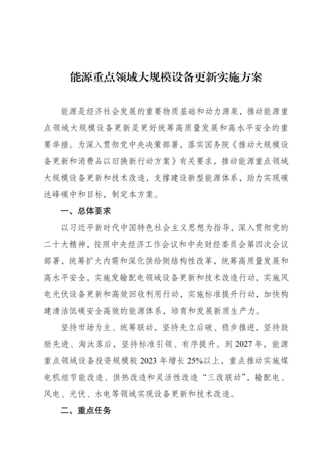 國家發(fā)展改革委辦公廳 國家能源局綜合司關(guān)于印發(fā)《能源重點領(lǐng)域大規(guī)模設(shè)備更新實施方案》的通知
