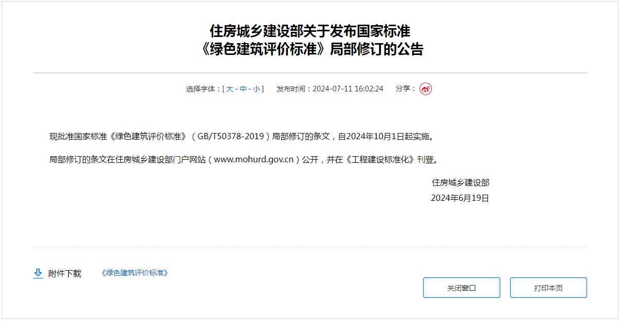 住房城鄉(xiāng)建設(shè)部關(guān)于發(fā)布國(guó)家標(biāo)準(zhǔn) 《綠色建筑評(píng)價(jià)標(biāo)準(zhǔn)》局部修訂的公告