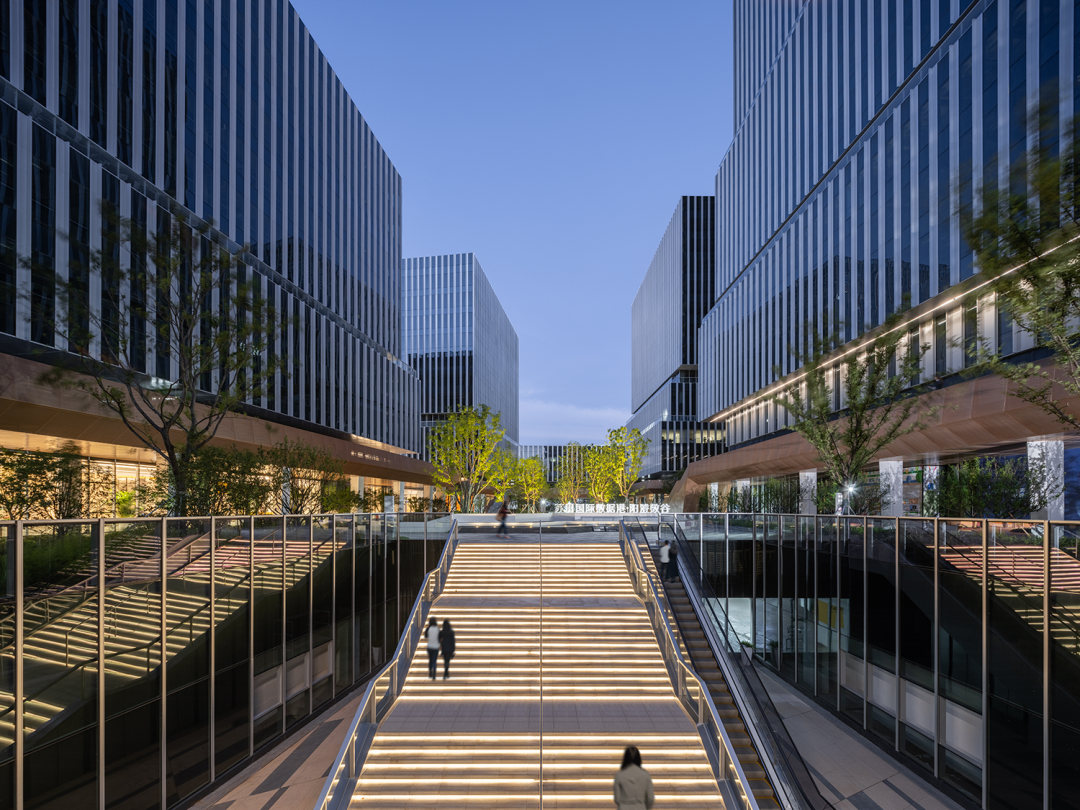 FTA為需求量身打造產(chǎn)業(yè)社區(qū)空間,在一期的設(shè)計(jì)中采用“峽谷”理念,通過建筑三段式形體和圍合式群組的方式,創(chuàng)造了一個(gè)內(nèi)向型的公園式“科技谷”。
