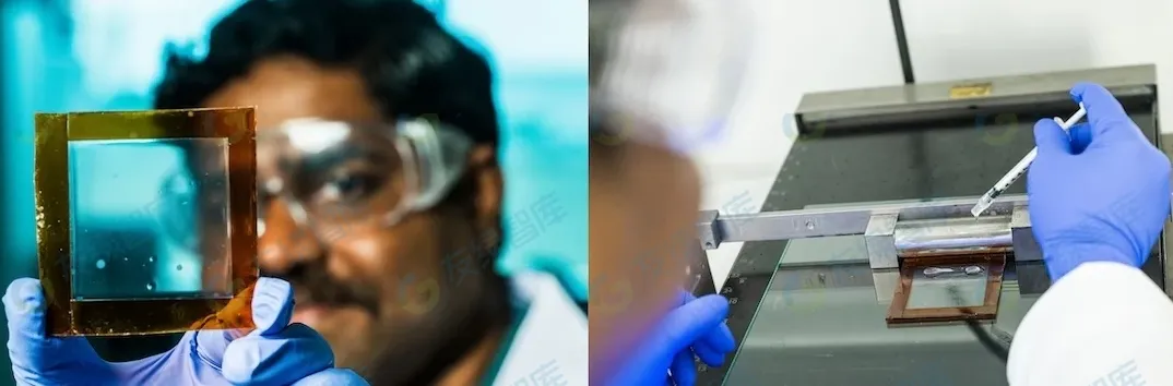 據(jù)介紹,該熱致調(diào)光玻璃是種高分子納米凝膠材料,低溫時分子均勻分散,呈現(xiàn)透明狀態(tài),太陽光可直接透過。當溫度升高時,分子形成團簇,可對不同波段的太陽光形成折射和反射,將這種調(diào)光材料與兩片玻璃組合在一起,形成玻璃與遮陽一體化的智能調(diào)光玻璃產(chǎn)品,就可把炎熱擋在窗外。