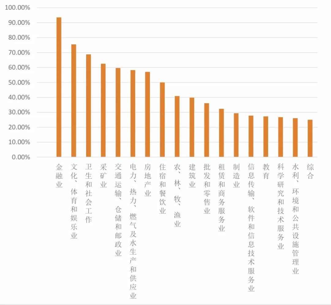 圖2 2023年我國(guó)不同行業(yè)A股上市公司發(fā)布獨(dú)立ESG/社會(huì)責(zé)任報(bào)告比率
