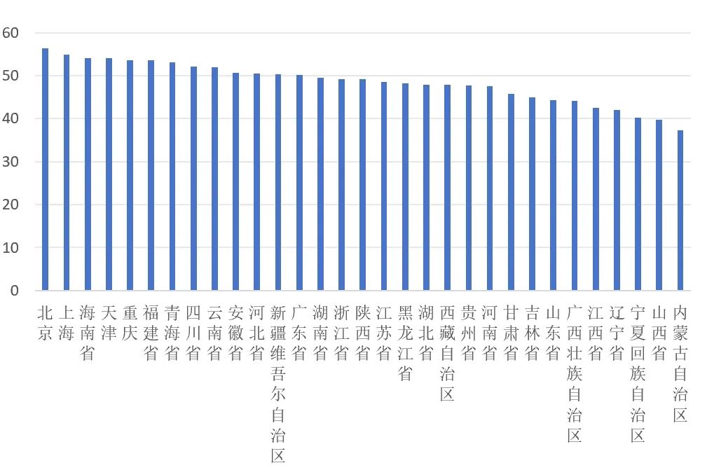 圖7 2023年各地區(qū)A股上市公司ESG平均得分情況