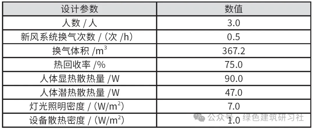 該項(xiàng)目室內(nèi)環(huán)境設(shè)計(jì)參數(shù)如表1所示。