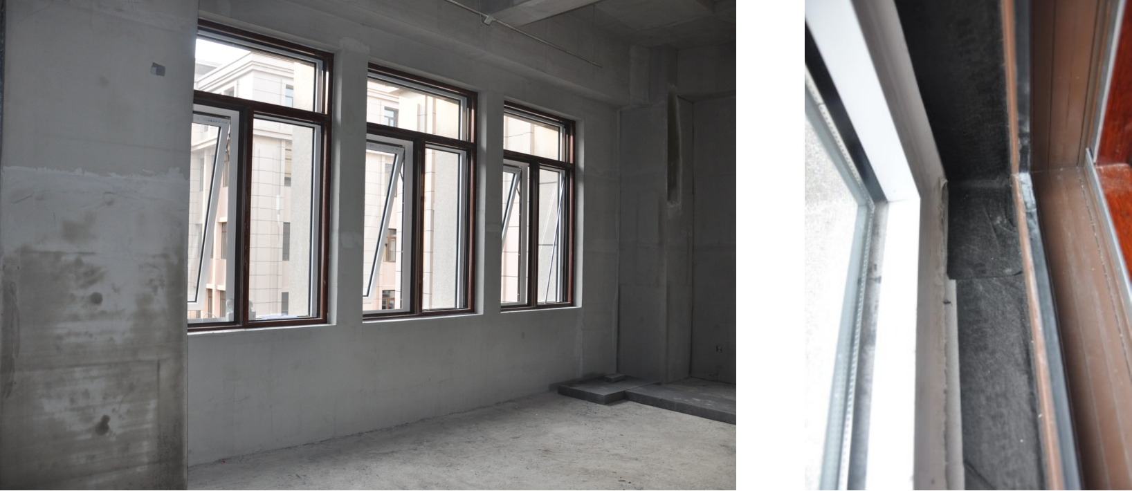(1)卓越的建筑氣密性 I 整棟建筑具有包繞整個采暖體積的、連續(xù)完整的氣密層。被動區(qū)范圍邊界上,保溫層室內(nèi)一側(cè)均設(shè)置防水隔汽膜,外墻保溫、屋面保溫、地面保溫室內(nèi)一側(cè)的防水隔汽膜連續(xù)包繞,在交接位置形成可靠搭接,形成閉合的氣密層;被動區(qū)范圍邊界上的門窗均為符合氣密性要求的被動窗、被動門,且安裝方式符合氣密性要求;在外墻、屋面開洞的位置,需要采用符合氣密性要求的施工方法進(jìn)行處理。
