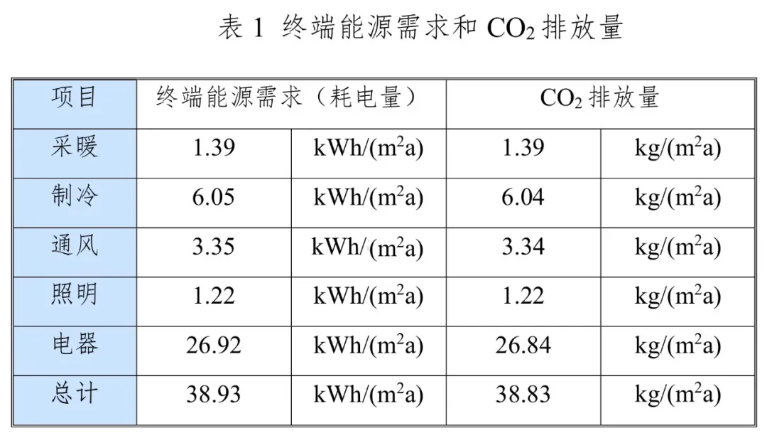改造后,建筑的采暖終端能耗1.39 kWh/(㎡·a),制冷終端能耗6.05 kWh/(㎡·a),包括采暖、制冷、通風(fēng)、照明、電器全部在內(nèi)的總終端能耗為38.93kWh/(㎡·a)。