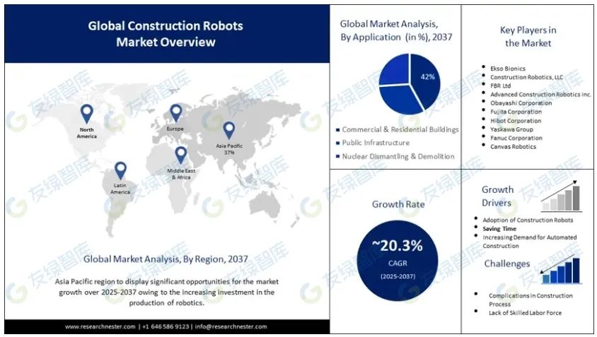 美國綠色建筑委員會報告稱,建筑施工占美國廢物總量的 30%,全球估計在 25-40% 之間。這加速了建筑機器人的采用,尤其是在精度和效率至關(guān)重要的非住宅項目中。