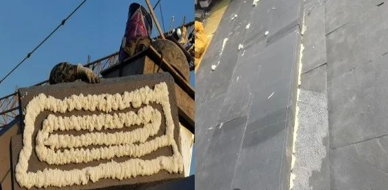 4.保溫板厚度均分兩層粘貼,必須采用發(fā)泡膠粘貼,拼縫填注發(fā)泡膠。