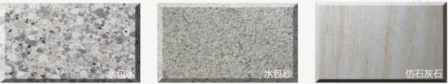 常見的仿石涂料有合成樹脂乳液砂壁狀涂料、“水包水”“水包砂”,以及近期流行的“砂包砂”涂料。