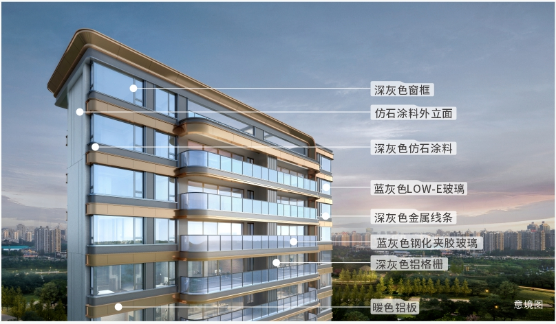 中交·象江來項目外立面選用的是充滿現(xiàn)代感的材質(zhì),考驗工藝的一體化“L”型鋁板設(shè)計、高耐候的水包水仿石涂料、充滿細(xì)節(jié)的質(zhì)感涂料、水晶灰LOW-E等新技術(shù)、新材料的搭配使用,形成了新的審美,塑造出全新維度的美學(xué)體系。