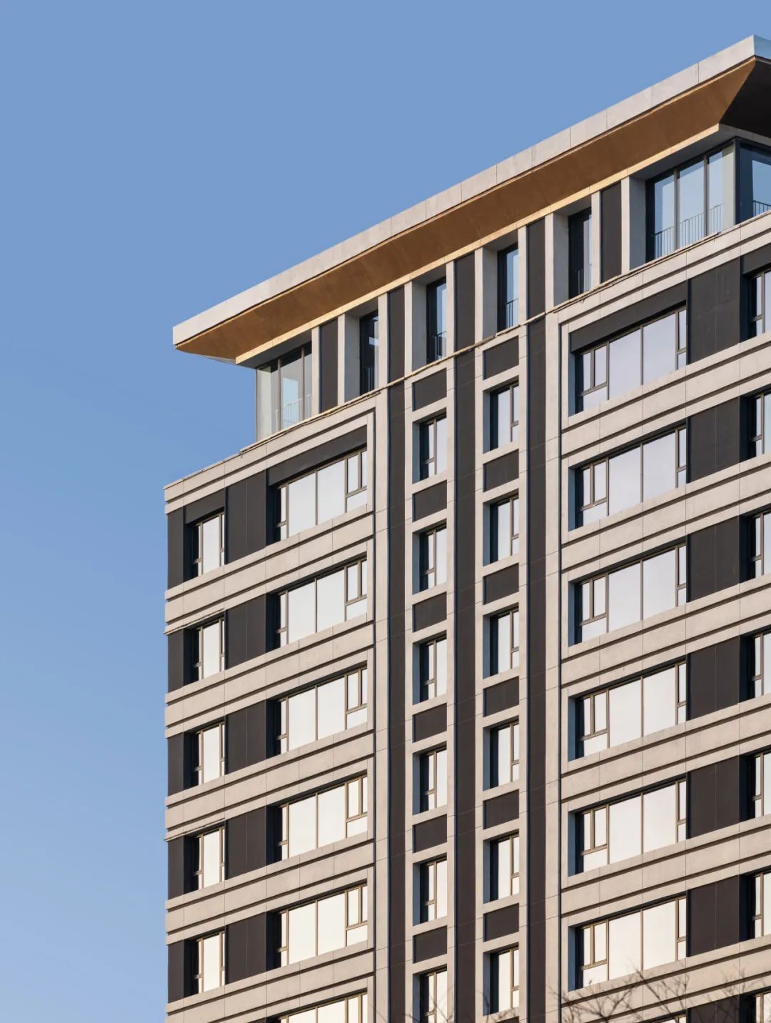 西安中糧·奧體壹號外立面標(biāo)準(zhǔn)段的主材采用了灰白色真石漆與深灰色質(zhì)感涂料的組合,互為調(diào)和,通過深與淺形成的虛實對比達(dá)成達(dá)成清晰明確的立面線條構(gòu)成關(guān)系,簡潔明快而不失典雅。