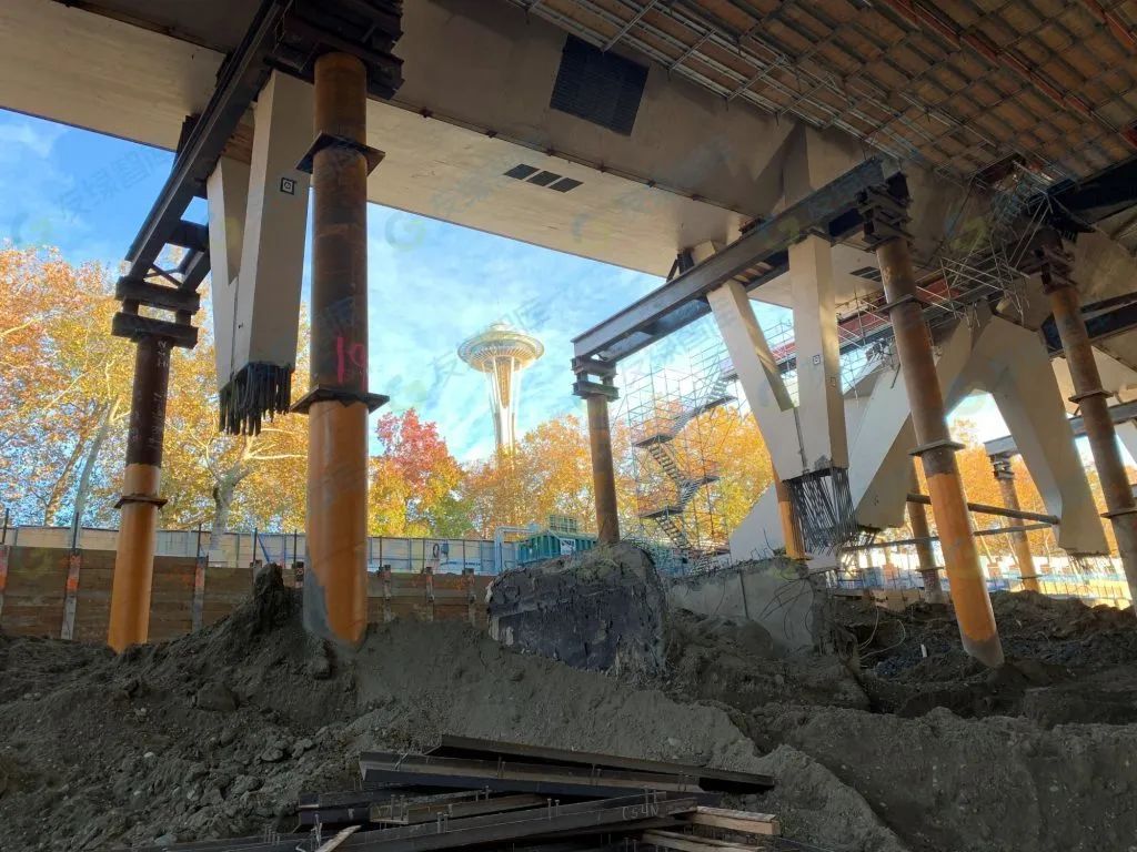 除了設(shè)計碳中和場館的挑戰(zhàn)外,設(shè)計還必須保留由 Paul Thiry 設(shè)計的擁有 59 年歷史的屋頂。新建筑要求將重達(dá) 4400 萬磅的屋頂保留,而新競技場則建在下方。工程師 Thornton Tomasetti 執(zhí)行了一項艱巨的工作,拆除了屋頂?shù)脑嫉鼗?,并?chuàng)建了一個臨時結(jié)構(gòu),使屋頂處于懸空狀態(tài)。然后,工人們在下面挖出近 100 萬噸泥土,為新場館擴大的占地面積騰出空間,其占地面積遠(yuǎn)遠(yuǎn)超出了上面歷史屋頂?shù)牡嗡€。然后,這個重達(dá) 4400 萬磅的屋頂重新連接到新的永久地基上,這是一項建筑和工程壯舉。