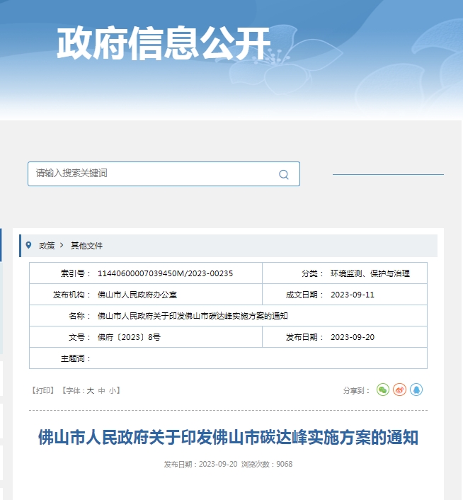 佛山市碳達(dá)峰實(shí)施方案的通知
