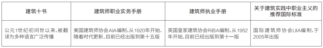 表2 國際通行的建筑師執(zhí)業(yè)指南