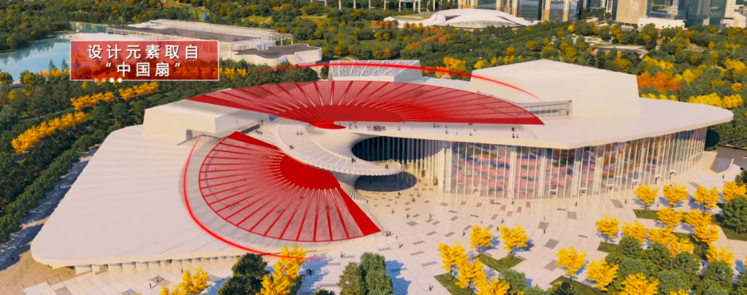 上海大歌劇院的建筑外形極具特色,取“中國扇”之意,結(jié)合歌劇藝術(shù)的動態(tài)美感,巨大的白色階梯螺旋上升,延伸到空中,恰似打開的折扇,盡顯中國風(fēng)之美。