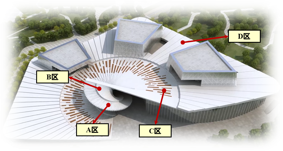 (3)C區(qū)D區(qū)則是集成四面內(nèi)傾、雙向懸挑、最高凈空65m、最大跨度27m等諸多苛刻難點的大面積大跨度螺旋鋼屋蓋結(jié)構(gòu)。