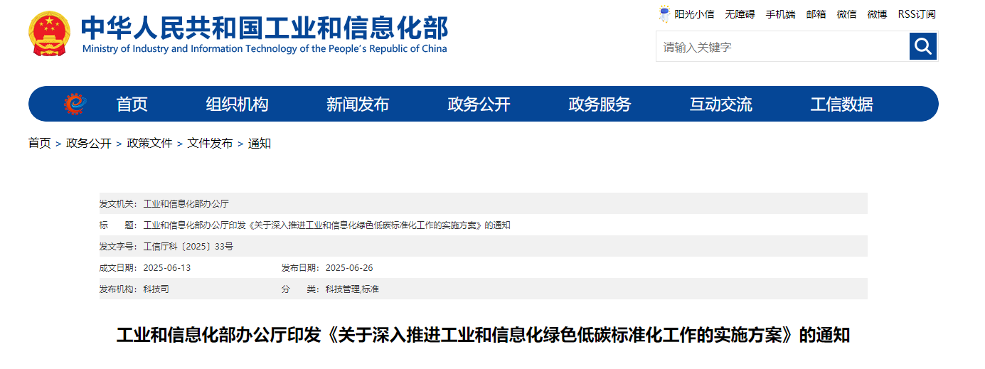 【工業(yè)和信息化部辦公廳】印發(fā)《關(guān)于深入推進(jìn)工業(yè)和信息化綠色低碳標(biāo)準(zhǔn)化工作的實施方案》的通知