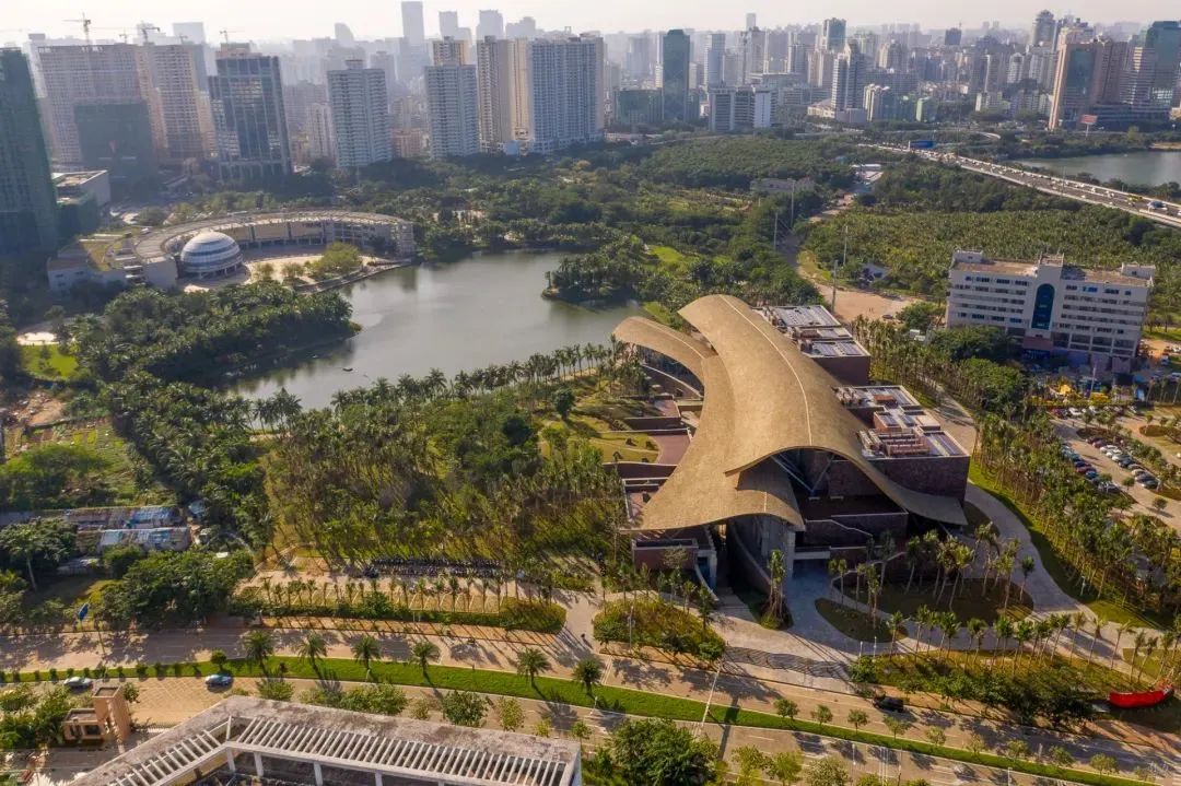 2018年,崔愷院士團(tuán)隊承擔(dān)海口市民游客中心項目。該項目位于海口市世紀(jì)公園旁,周邊是市民活動場所。為了接待游客、展示城市魅力,又不打擾市民日常健身,設(shè)計團(tuán)隊將建筑設(shè)計為開放式。