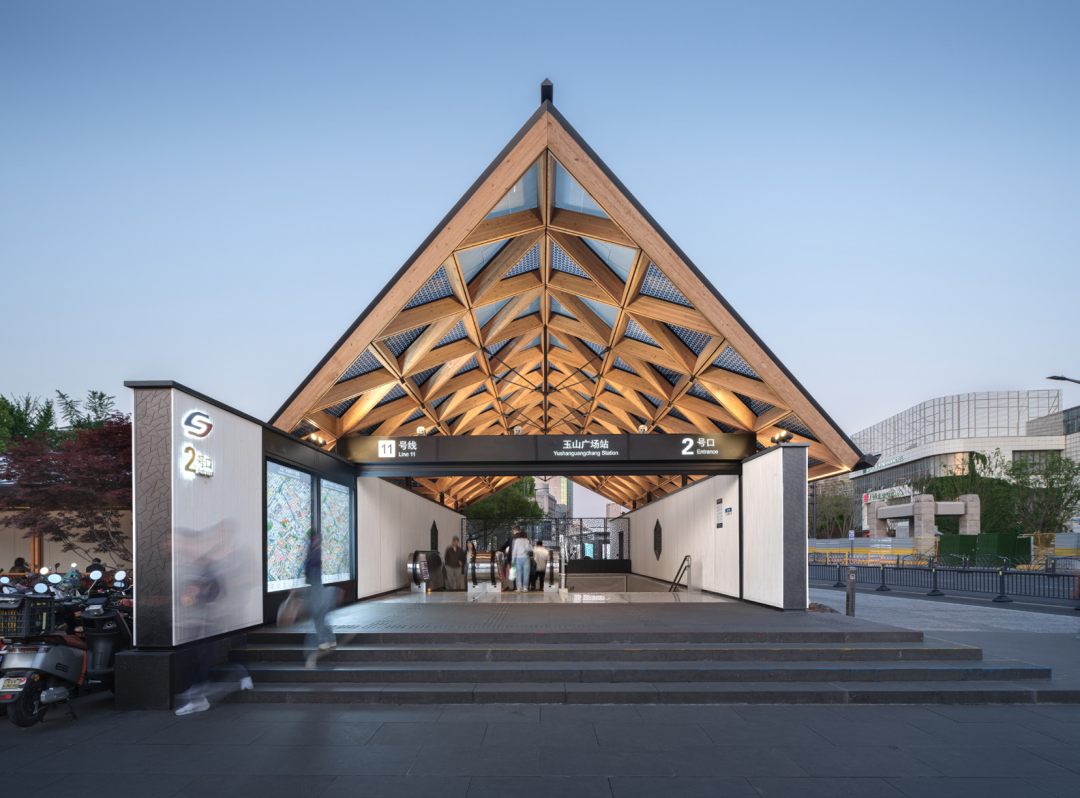 該地鐵站建成后深受昆山老百姓喜愛,成為網(wǎng)紅打卡地。該項目不僅在站房設(shè)計上獨(dú)具特色,還通過周邊環(huán)境整治和文化場景營造,以小建筑帶動城市品質(zhì)提升,將市政基礎(chǔ)設(shè)施精細(xì)化,用木結(jié)構(gòu)替代傳統(tǒng)鋼材和混凝土材料,營造出溫暖的場景。