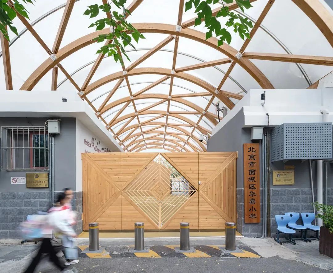 在北京市西城區(qū)華嘉小學(xué)改造中,考慮到學(xué)??臻g狹小,孩子們?nèi)狈ν嫠?臻g,崔愷院士團(tuán)隊利用假期二十幾天時間,采用裝配式木結(jié)構(gòu)和陽光板搭建棚架,快速建成孩子們可以上課、玩耍、休息的場所。目前,已有其他學(xué)校尋求類似的木結(jié)構(gòu)改造方案。這些嘗試讓北京市舊城區(qū)逐漸煥發(fā)生機(jī)。