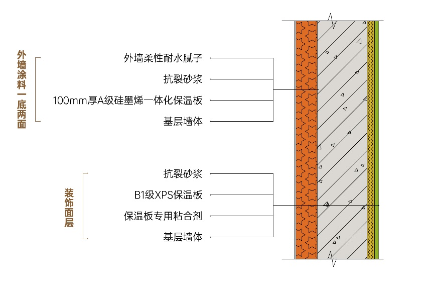 采用預(yù)制反打保溫模板外墻系統(tǒng)及現(xiàn)澆免拆保溫模板外墻系統(tǒng),在確保外墻保溫性能的同時(shí)從根源上避免外墻保溫脫落的情況。外墻保溫系統(tǒng)所用的硅墨烯保溫板為A級(jí)不燃材料,解決外墻保溫的消防安全問(wèn)題。