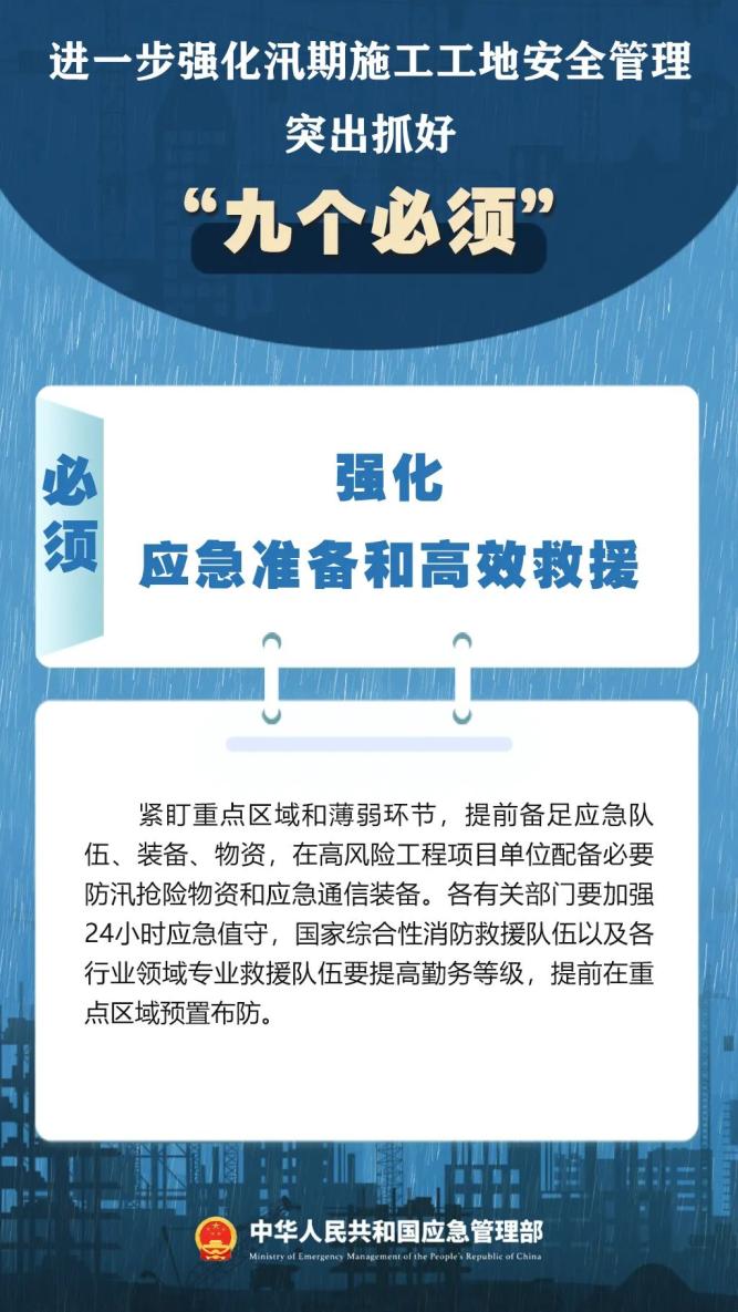 通知強(qiáng)調(diào),進(jìn)一步強(qiáng)化汛期施工工地安全管理,要突出抓好“九個(gè)必須”: