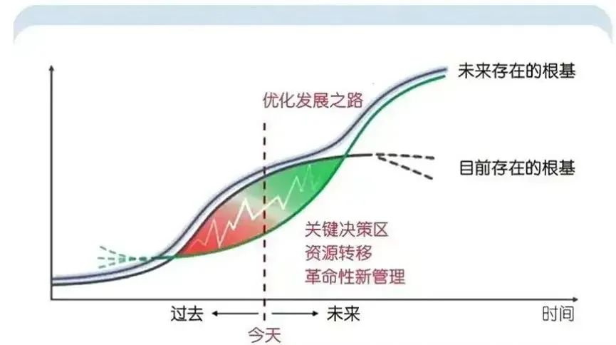 從舊曲線向新曲線過(guò)渡的階段,被稱為“葉狀區(qū)域”(the leaf-shaped area)。這是一個(gè)充滿不確定性、混亂甚至痛苦的時(shí)期,企業(yè)需要放棄過(guò)去的成功經(jīng)驗(yàn),探索未知領(lǐng)域,面臨資源分配、組織變革和文化重塑等多重挑戰(zhàn)。成功穿越這一區(qū)域,企業(yè)將迎來(lái)新生和新一輪的增長(zhǎng);反之,則可能陷入“創(chuàng)新者的窘境”,被時(shí)代所淘汰。