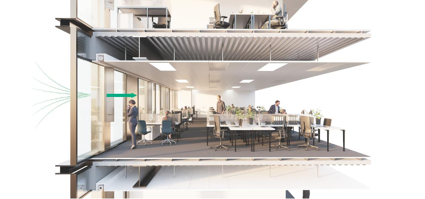 中海金融中心1號樓宇聚焦被動技術(shù)降需求、主動技術(shù)提能效、能源轉(zhuǎn)型降排放、低碳建造降隱含碳等4大類18項技術(shù)措施,構(gòu)建了一個綠色、環(huán)保、高效的辦公環(huán)境。