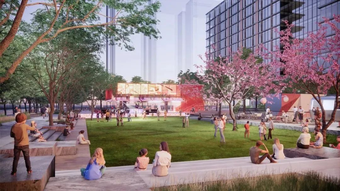 展望生態(tài)未來,營造多維場景。集中綠地位于地塊東南角,設(shè)置了大吉魔方科技之門、低碳花園、能量體驗館、草坪劇場、森林露臺等,與地塊東南側(cè)的社區(qū)集中綠地連為一體,還綠于民,打造健康、節(jié)能為主導(dǎo)的時代辦公產(chǎn)品和兼具城市記憶、城市生態(tài)與城市活力的都市綠地花園,為市民提供了多維度活動空間。