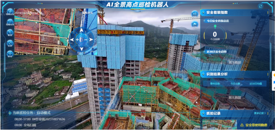 對(duì)比傳統(tǒng)的視頻監(jiān)控,AI全景高點(diǎn)巡檢機(jī)器人是一款輔助現(xiàn)場(chǎng)巡檢新工具,可更加便捷查看現(xiàn)場(chǎng)施工情況并進(jìn)行安全巡查,提升施工現(xiàn)場(chǎng)管理效率。它具備兩種模式: