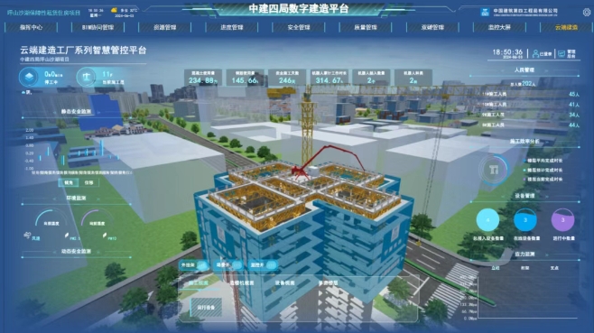 為響應(yīng)“十四五”規(guī)劃,中建四局以該項(xiàng)目為載體,打造“數(shù)字化、網(wǎng)絡(luò)化、智能化、工業(yè)化”新型建造方式,積極開(kāi)展包括數(shù)字設(shè)計(jì)、智能生產(chǎn)、智能施工、智慧運(yùn)維、建筑產(chǎn)業(yè)互聯(lián)網(wǎng)平臺(tái)、智能建造設(shè)備裝備等六大板塊智能建造各項(xiàng)技術(shù)的綜合應(yīng)用。